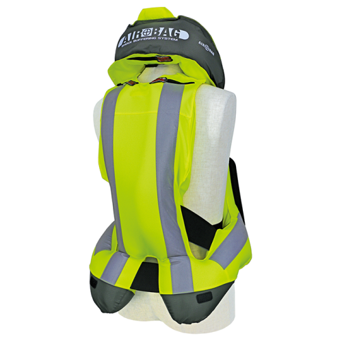 Presentando las últimas novedades en materia de seguridad, el chaleco airbag Hit-Air MLV-P 2 le ofrece una protección completa de la columna, desde las cervicales hasta el sacro y el cóccix; así como el tórax y el abdomen .
