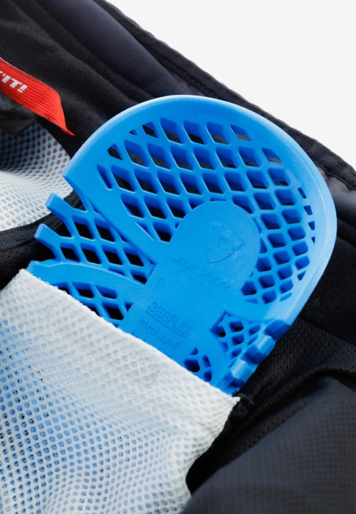 Prenda preparada para el protector de pecho dividido SEESOFT con certificación CE-nivel 1 El bolsillo de esta prenda de REV'IT! está hecho a medida para el inserto dividido para el pecho SEESOFT con certificación CE-nivel 1, que puede adquirirse por separado para maximizar la seguridad.