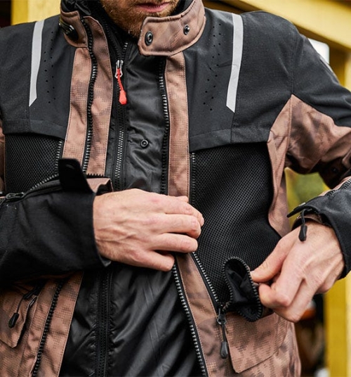 Chaqueta versátil multiestacional para la conducción de aventura.