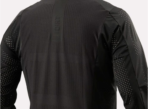 Es una prenda que tiene un diseño furtivo, y está confeccionada con el ligero y muy elástico material Lycra®, que gracias a esa flexibildad te da muchísima libertad de movimientos en tus incursiones por caminos por descubrir. Presenta muchos agujeros de ventilación hechos con láser en brazos y cuerpo. Así tendrás la corriente de aire que necesitas para mantener el confort durante la conducción off-road bajo altas temperaturas.