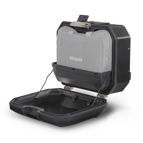 - Llaves y bombín versión premium de SHAD (no incluidos). Sistema que reduce la posibilidad de robo, así como una tapa que impide la entrada de polvo. Se incluyen en la maleta lateral derecha.