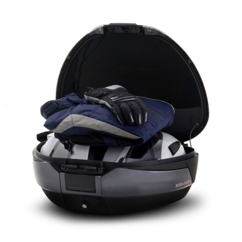 Con un peso de 3,7 Kg de baúl, es la más ligera del mercado en baúles de alta capacidad (48 litros). Con ello reducimos las vibraciones haciendo sufrir menos a los soportes y chasis de la moto. Ofrece la máxima seguridad gracias al “Smart Lock System” y permite varias configuraciones de personalización.