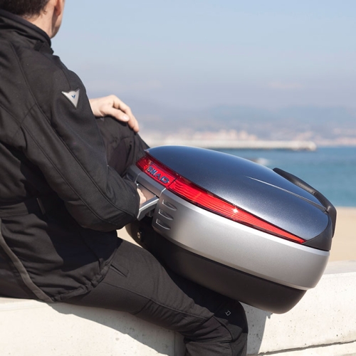 El baúl SH50 es un robusto y elegante baúl diseñado en Barcelona con capacidad para 2 cascos modulares, más extras. Ofrece la máxima seguridad gracias a su «Handle Lock System». Con su gran tamaño y respaldo incluido es ideal para los amantes de los viajes largos.