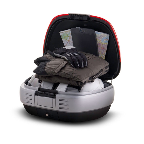 Maleta de moto robusta y elegante de 50 litros de capacidad (2 cascos modulares), con sistema de cierre hermético «Smart Lock System»